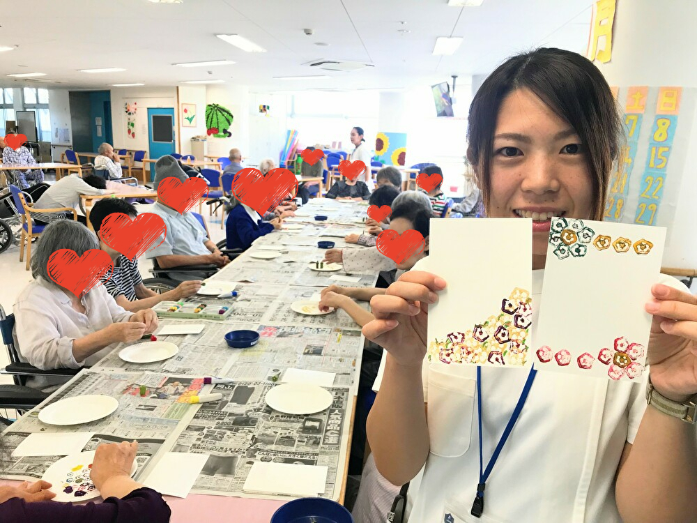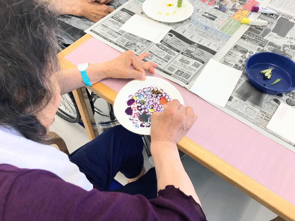 入院中の患者様も、思い思いの色や模様に仕上げ夢中で楽しんでおられました(*^-^*)