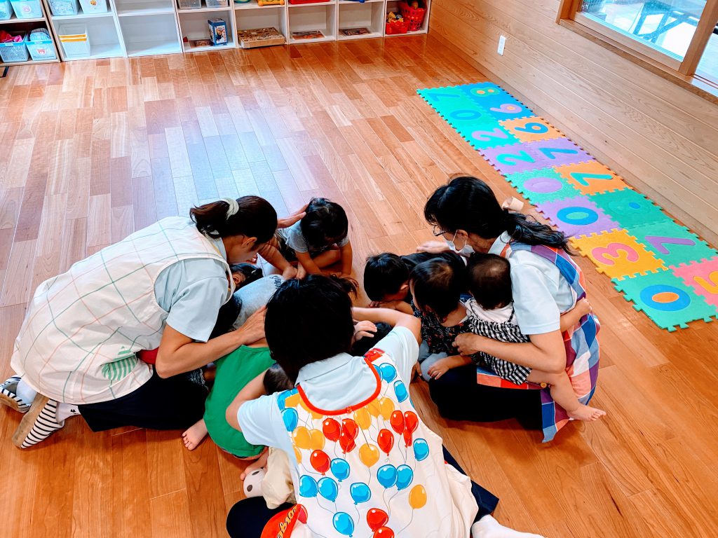 災害にも色々な種類はありますが、今回は託児所の子供たちと一緒に地震訓練を行いました。